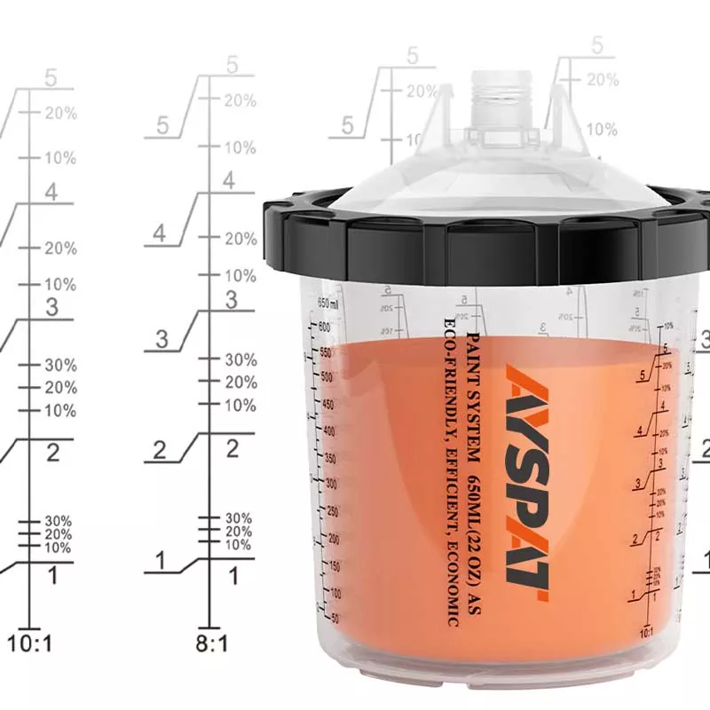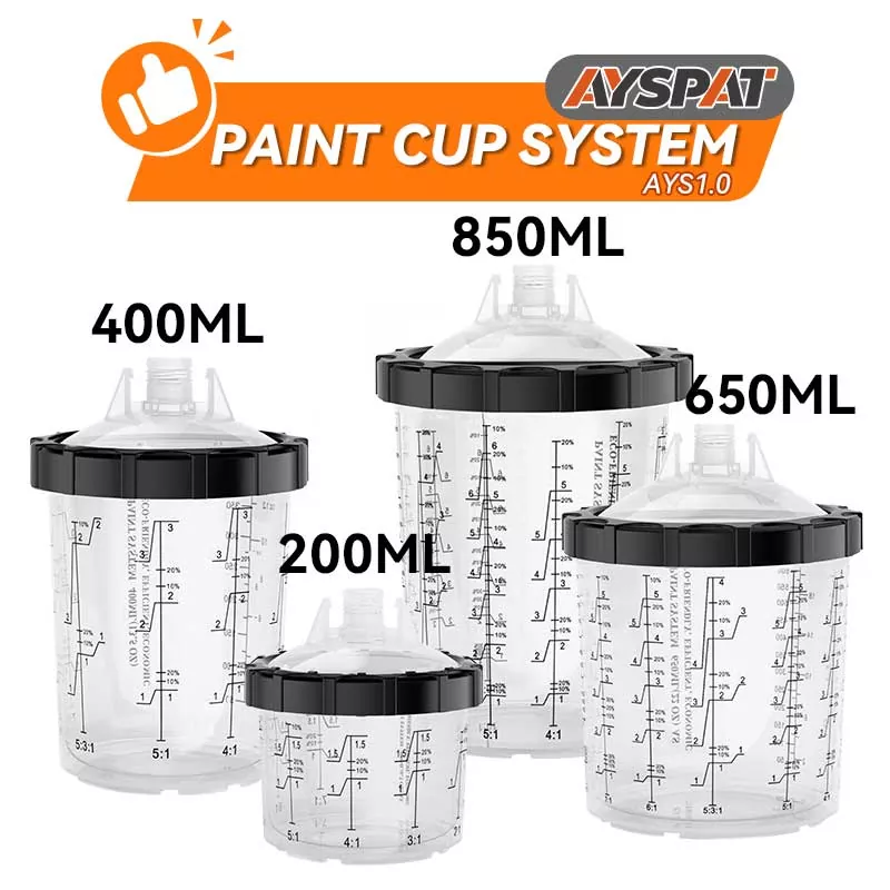 Sistemul de cupe de vopsea de unică folosință AYSPAT 200ML 1.0 a fost conceput ca urmare a cererii tot mai mari din partea pictorilor pentru o vopsire mai eficientă. Poate economisi costuri și poate realiza pictura cu mai multe unghiuri. Îl recomandăm cu căldură pentru utilizare în situații de vopsire, cum ar fi auto, industrial, casă și alte domenii. Căutați paharul pentru pistol de pulverizare de unică folosință fabricat în China, care vă va aduce o experiență de pictură de neuitat. Suntem producătorul sursă de sistem de cupe de vopsea de unică folosință, ne puteți contacta prin intermediul site-ului oficial sau al rețelelor sociale. De asemenea, putem oferi design gratuit și livrare de mostre.