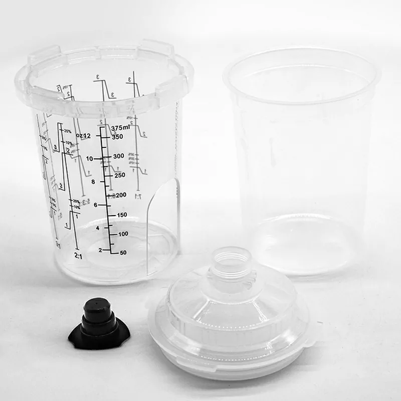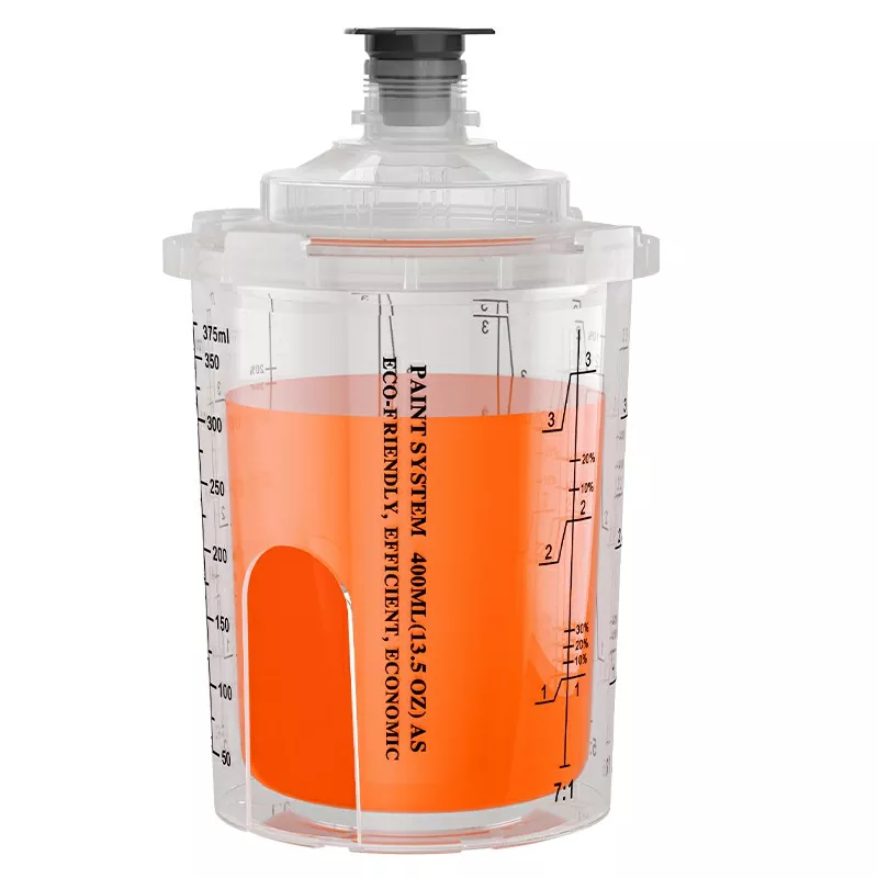 Sistemul de cupă de spray de unică folosință de 400 ml este o ceașcă de vopsea de unică folosință proiectată pentru reparații cu 2 panouri, este potrivit pentru zonele care necesită 13,5 uncii fuid (400 ml) sau mai puțin din material ,, cum ar fi barele de protecție. Designul brevetat al duzei nu numai că îmbunătățește etanșarea, dar îmbunătățește și efectul de pulverizare. În calitate de producător de sisteme de cupă de spray de unică folosință, AYSpat a optimizat continuu proiectarea cupelor de pulverizare de unică folosință, ne -am angajat să cerceteze și dezvoltarea și producția de cupe de spray de unică folosință mai convenabile și mai eficiente.