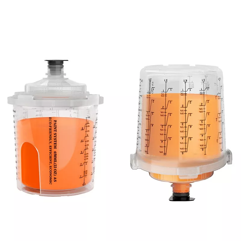 Cupa cu pistol de spray de unică folosință de 650 ml este un sistem de cupă de spray de unică folosință conceput pentru reparații cu 3 panouri, este potrivit pentru zonele care necesită 22 FL OZ (650 ml) sau mai puțin de material. Pe baza seriei 2.0, acesta prezintă un design modernizat al cupei exterioare. Cupa exterioară folosește un blocaj integrat pentru a bloca capacul cupei, eliminând componenta gulerului, ceea ce face mai ușor să înlocuiască cupa interioară. Timp de livrare de stocare 1-2 zile. În același timp, oferim și servicii OEM \ ODM pentru a răspunde nevoilor de personalizare a mărcilor, cu un timp mediu de livrare de 15-20 de zile.