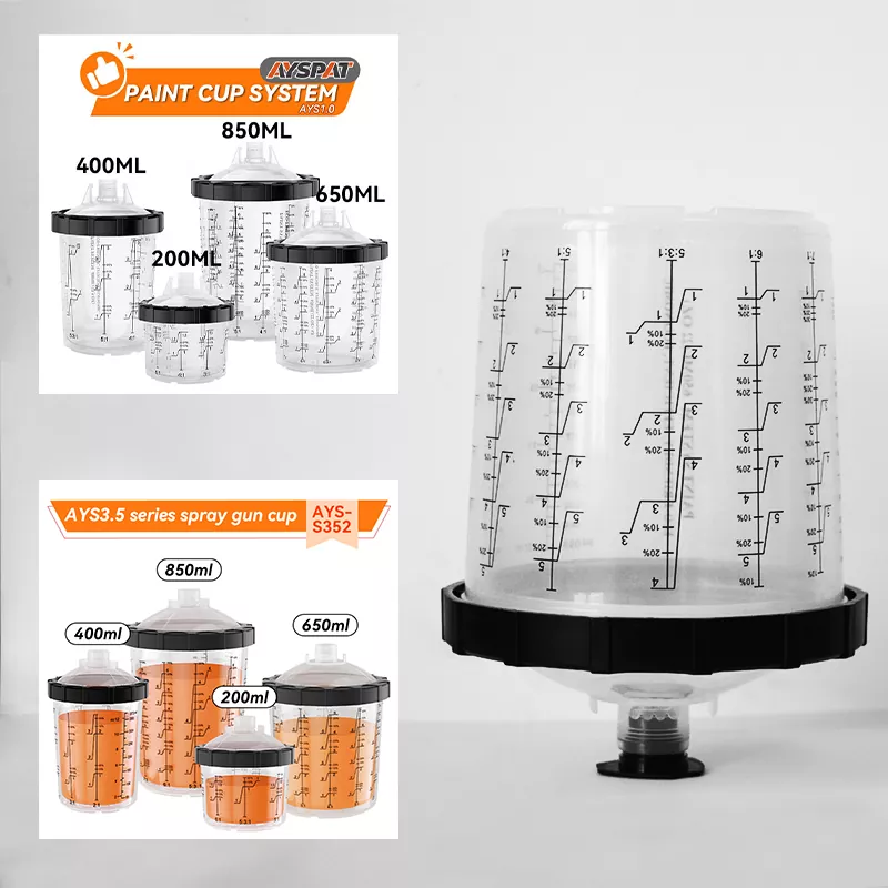 După eforturi continue, Qingdao Aspaint a lansat noul său produs brevetat – Speedy Paint System 2.0 de 650 ml. Duza lărgită plus noul design al gardului de ghidare pe capac susțin o vopsire mai convenabilă și mai eficientă. Cupa exterioară și logo-ul suport al ambalajului a fost personalizat, sporind influența mărcii dumneavoastră. În plus, oferim și dimensiuni de 200 ml, 400 ml și 800 ml pentru a satisface diferite situații și nevoi ale pictorilor. Utilizați fiecare parte a vopselei pentru a obține zero deșeuri în lucrările de vopsire!