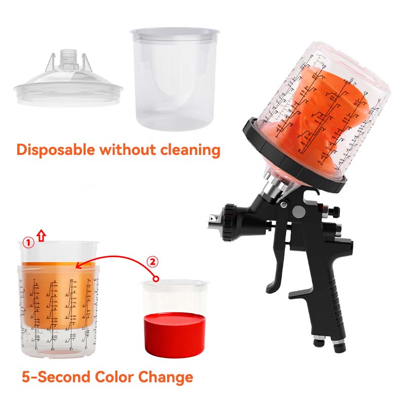Faceți trecerea lapahare pentru pistol de pulverizare de unică folosințăși simplificați retușurile auto, acoperirea mobilierului și toate tipurile de lucrări de vopsire. Economisiți timp, reduceți necazurile și bucurați-vă de operațiuni mai fluide de la început până la sfârșit.